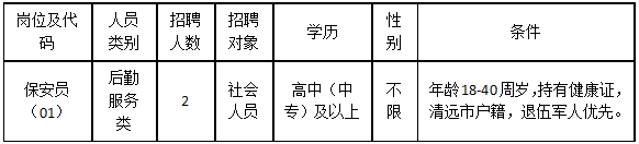 清遠(yuǎn)市清城區(qū)機(jī)關(guān)事務(wù)管理局因工作需要,根據(jù)《關(guān)于印發(fā)<清遠(yuǎn)市清城區(qū)機(jī)關(guān)事業(yè)單位專項(xiàng)工作聘員、合同制聘員以及后勤服務(wù)類人員管理辦法>的通知》(城區(qū)人社〔2022〕20號(hào))文件精神,面向社會(huì)公開(kāi)招聘后勤服務(wù)類人員2名,現(xiàn)將有關(guān)事宜公告如下: